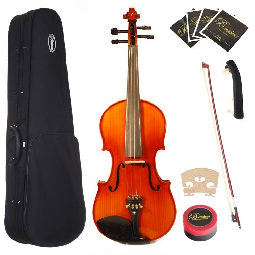 Top of the line yet reasonably priced, the Barcelona Orchestra Series Violin is a beautiful instrument to behold and a pleasure to play. Best of all, it sounds as marvelous as it looks and feels. The Orchestra Series has an aged finish that is more natural looking than the Beginner and Student Series models, and it also has sturdier tuning pegs. Made of hand-carved solid maple with a spruce top, the violin has an eye-catching gloss finish that protects the instrument from scratches and surface wear. Moreover, it comes with everything you need to start playing today -- bow, rosin, bridge, shoulder rest, and extra strings -- along with a lightweight, plush-lined hard shell case to ensure that your instrument remains in mint condition. Buy with confidence as all Barcelona products come with a one-year warranty against manufacturing defects. see more...more product promotion...